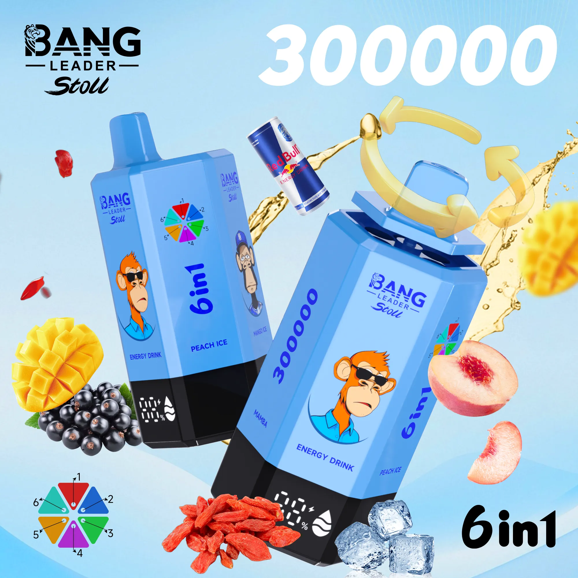 The Bang Leader 300K is a rechargeable disposable vape engineered for ultra-high-capacity use and versatile flavor enjoyment. With up to 300,000 puffs, it delivers extended vaping sessions without the need for frequent replacements. Moreover, its six independent oil tanks and 6-in-1 flavor system allow users to switch between flavors effortlessly, providing multiple taste experiences in a single device.
